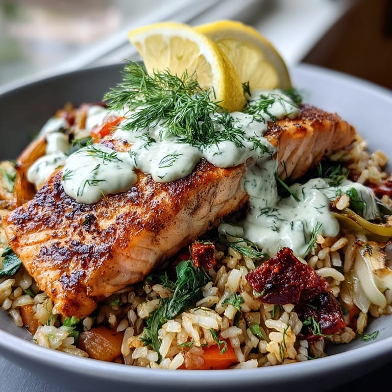 Pin it My friend Sarah showed up at my apartment one Tuesday evening with a bag of beautiful salmon fillets and the kind of energy that meant she'd been thinking about dinner all day. We started chopping vegetables while she told me about this bowl she'd been craving—crispy rice, Mediterranean flavors, everything balanced on one plate. By the time we finished eating, I understood why she couldn't stop talking about it. The combination of textures, the way that lemon-yogurt sauce tied everything together, the salmon still warm and flaky—it became the dish I make whenever I want to feel like I'm cooking something both impressive and deeply comforting.