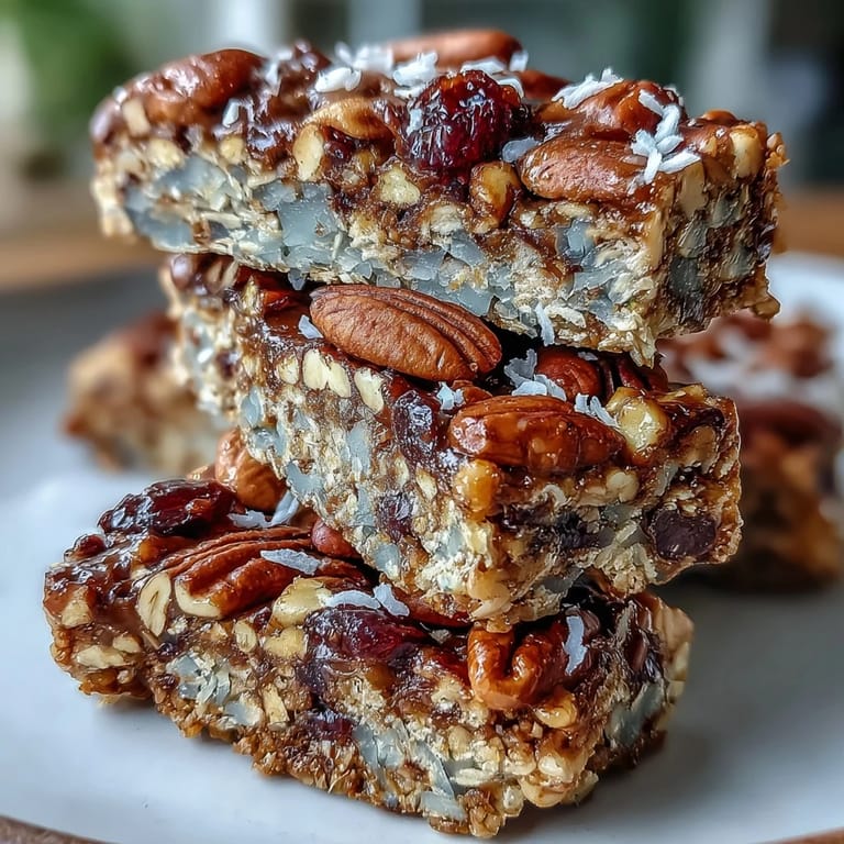 Pin it Chewy, nutritious, and bursting with wholesome ingredients, these No-Bake Granola Energy Bars are your perfect companion for picnics, hikes, or a quick, satisfying snack on the go. Packed with oats, nuts, and dried fruit, they combine texture and natural sweetness in every bite without any oven time required. Simple to prepare yet full of flavor, these bars offer energy and nourishment whenever you need it.